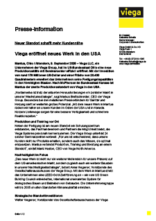 Viega eröffnet neues Werk in den USA