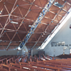 Before beginning the installation, the general contractor had to take into account the special features of the structure. The challenge was to run the piping as discretely as possible because there was no false ceiling to hide it. Therefore the installers used a lifting platform to work very high, as close as possible to the peak, the framing and the radiant heating panels.