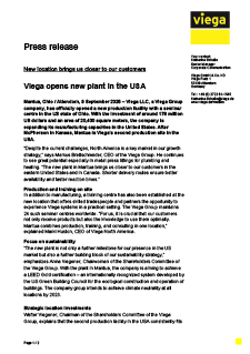 “Despite the current challenges, North America is a key market in our growth strategy,” says Markus Brettschneider, CEO of the Viega Group. He continues to see great potential especially in metal press fittings for plumbing and heating. “The new plant in Mantua brings us closer to our customers in the eastern United States and in Canada. Shorter delivery routes ensure better availability and faster reaction times.”